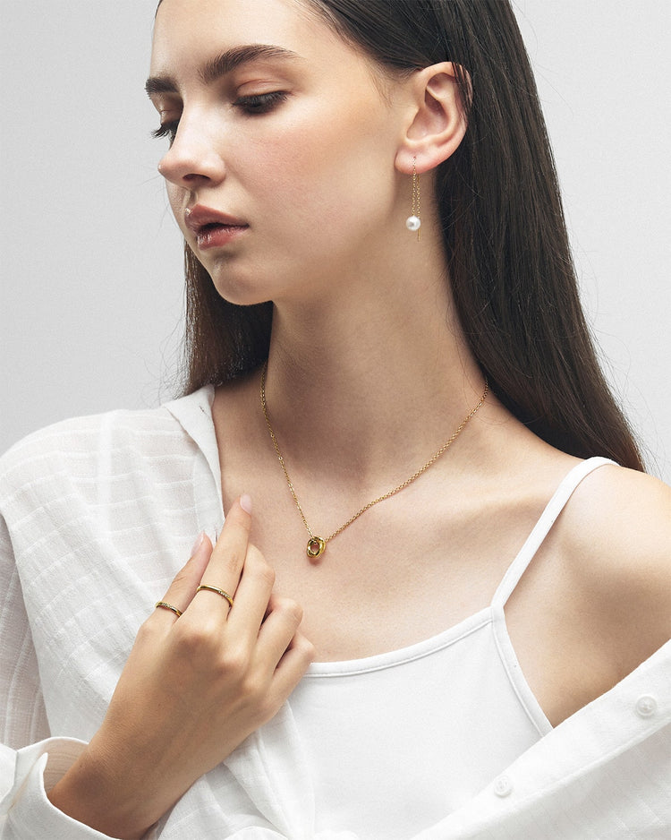 二重に重なり合うサークルモチーフが、絆や永遠を象徴するネックレス。シンプルで洗練されたデザインは、どんなスタイルにも馴染み、日常から特別なシーンまで幅広く活躍します。