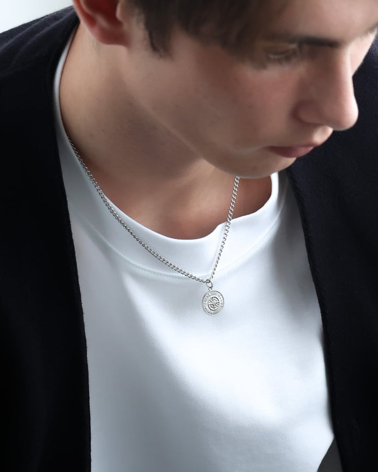 胸元に輝く、コインネックレス。