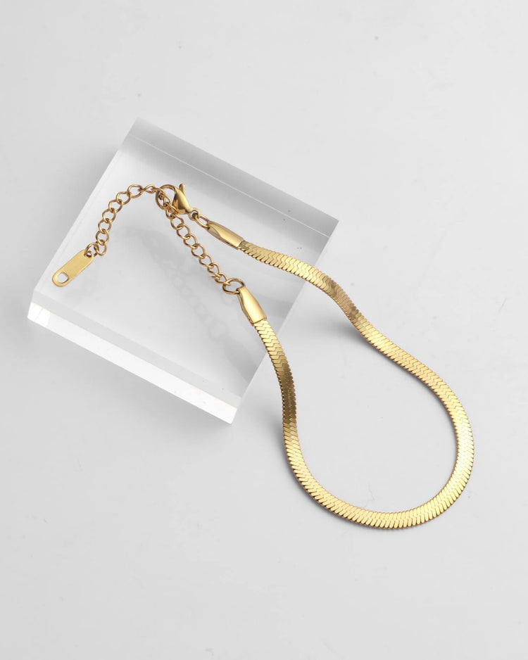 モードにもカジュアルにも馴染む万能デザイン。日常から特別なシーンまで、足元に大人の余裕を添えるアンクレットです。