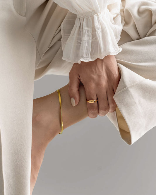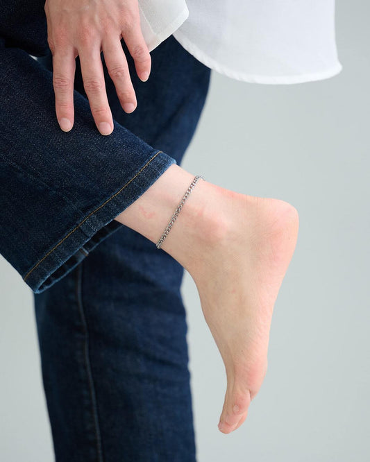シンプルに使いやすいフィガロチェーンを採用したアンクレット,,,スタイリッシュに決まる一本。