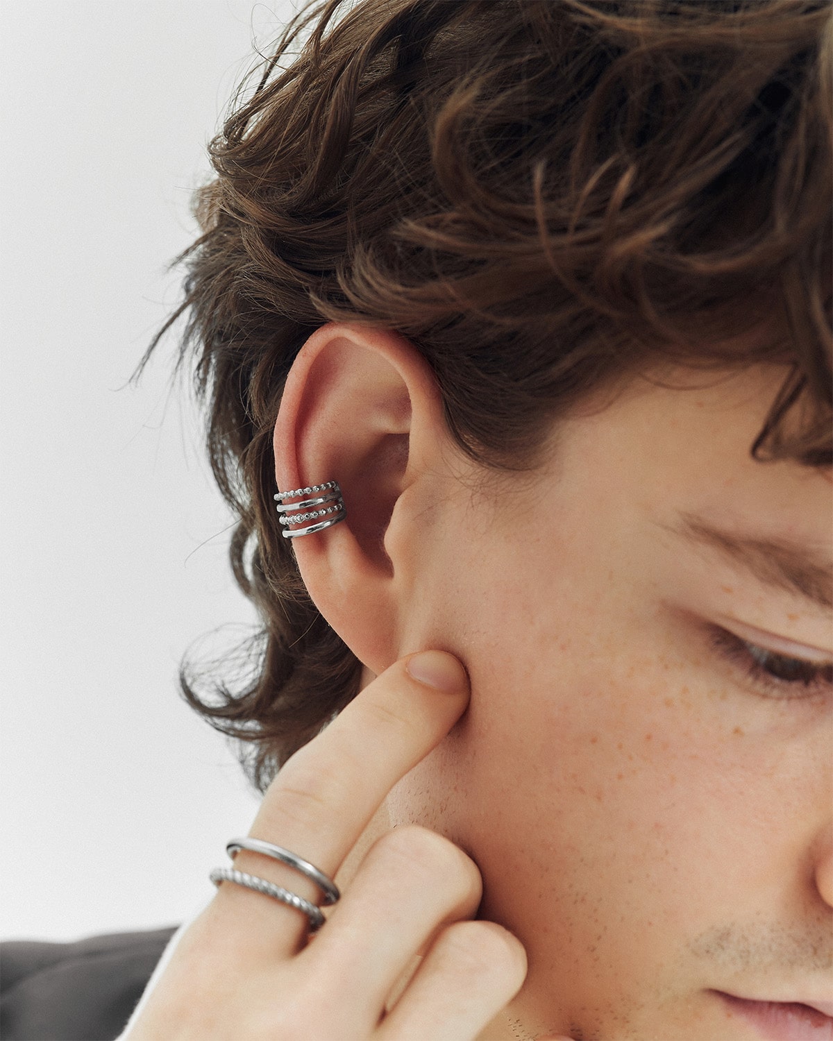 ”繊細なラインが重なり合い、横顔に上質な存在感をプラス…”