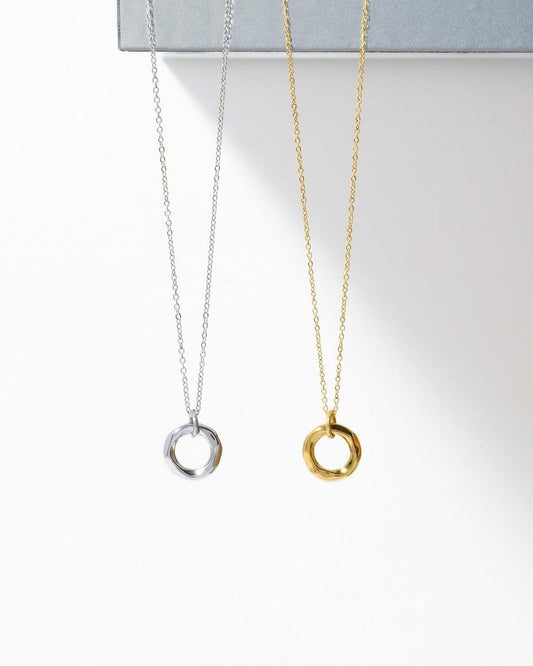 ”小ぶりのダブルリングネックレスは洗練された大人の雰囲気に...シンプルで男女問わず使いやすいサイズ感のネックレス..."